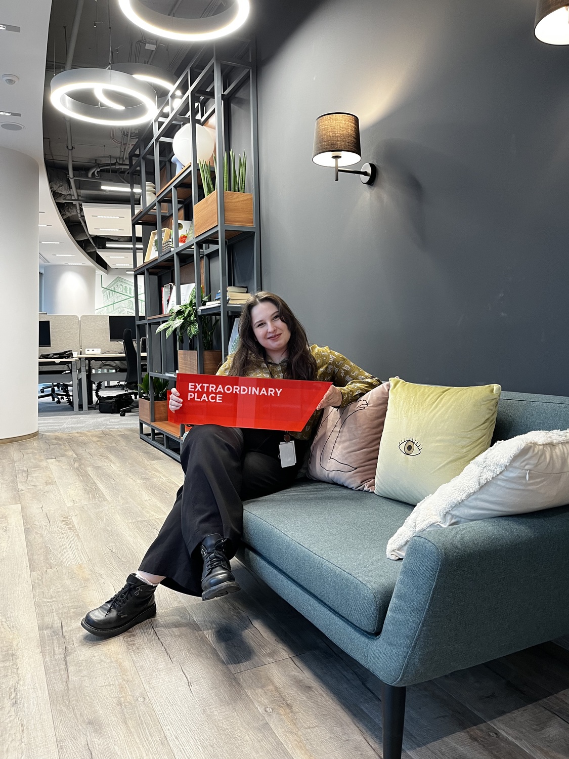 Weslie sitting on a sofa